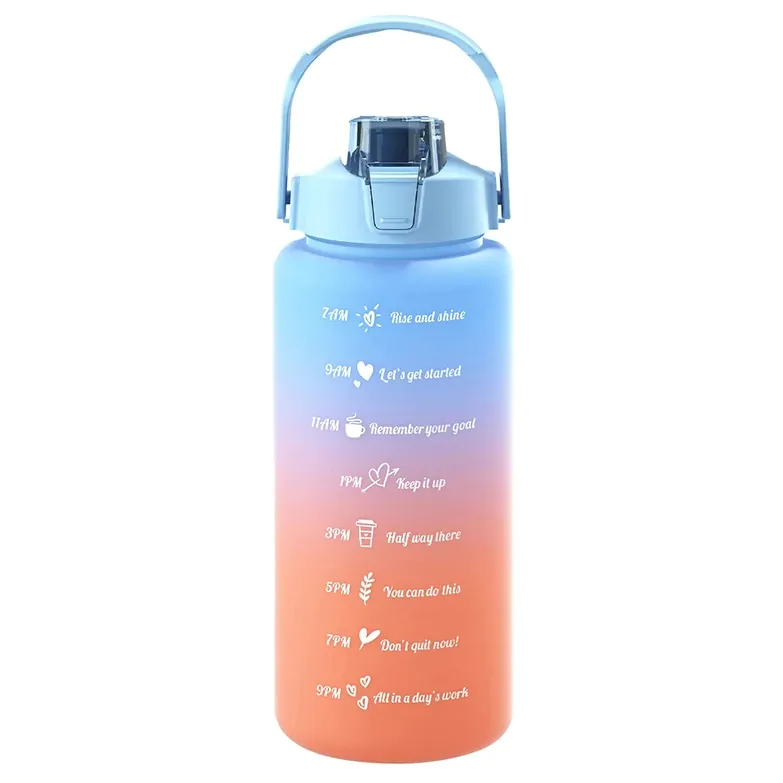 Αναβαθμίστε την καθημερινή σας ενυδάτωση με αυτό το εντυπωσιακό παγούρι νερού 2 λίτρων, σχεδιασμένο για να σας βοηθήσει να πετύχετε τους στόχους σας! Κατασκευασμένο από υψηλής ποιότητας, ανθεκτικό και ασφαλές για την υγεία πολυπροπυλένιο (PP), αυτό το παγούρι συνδυάζει πρακτικότητα, στυλ και παρακίνηση.
