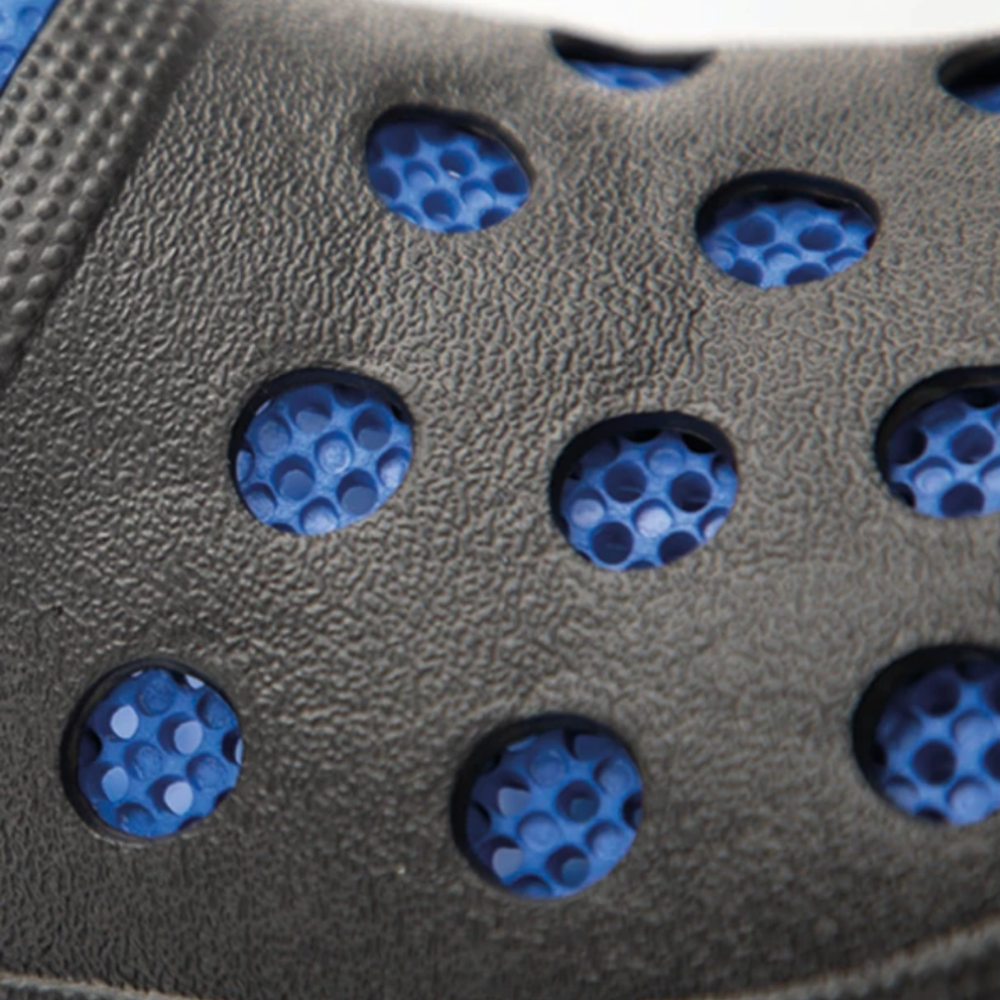 Η κατασκευή από EVA εξασφαλίζει εξαιρετικά χαμηλό βάρος και ανθεκτικότητα, ενώ η πλούσια διάτρηση στο άνω μέρος επιτρέπει συνεχή αερισμό, κρατώντας το πόδι δροσερό και στεγνό. Το λουράκι στη φτέρνα προσφέρει καλύτερη εφαρμογή και σταθερότητα όταν χρειάζεται, μετατρέποντας το παπούτσι από slip-on σε πιο ασφαλή επιλογή.