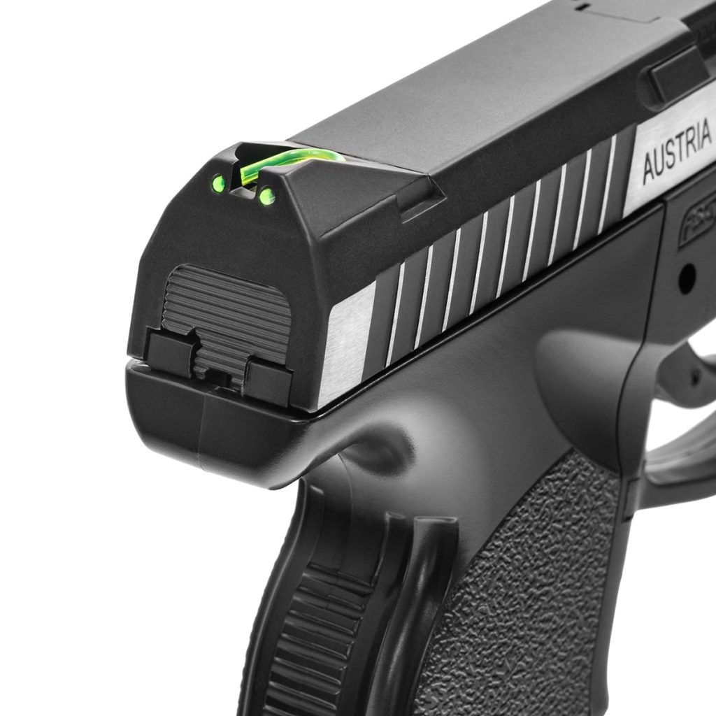 - Σκόπευση: Σταθερό στόχαστρο και οπτική ίνα υψηλής αντίθεσης σε πράσινο χρώμα για ευκολότερη σκόπευση, ακόμα και σε συνθήκες χαμηλού φωτισμού. Η λευκή κουκκίδα στο στόχαστρο προσομοιώνει τα tritium, ενισχύοντας την ορατότητα.