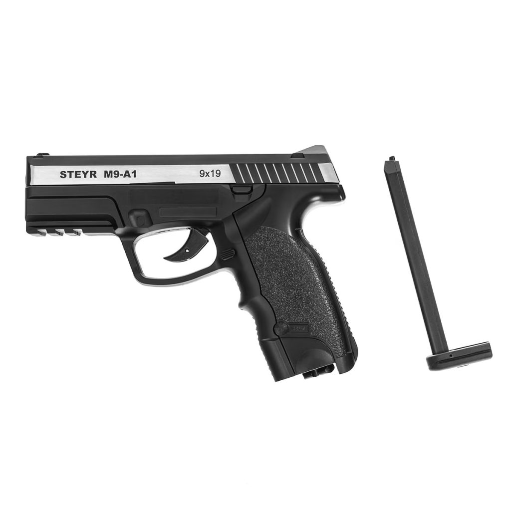 Η replica αποδίδει με εντυπωσιακή λεπτομέρεια το αυθεντικό M9-A1, φέροντας τις αυθεντικές σημάνσεις της Steyr Mannlicher και το χαρακτηριστικό διαμέτρημα 9×19. Η μεταλλική κατασκευή του κλείστρου και η διχρωμία Dual Tone προσδίδουν μια μοναδική αισθητική και μια αίσθηση στιβαρότητας.