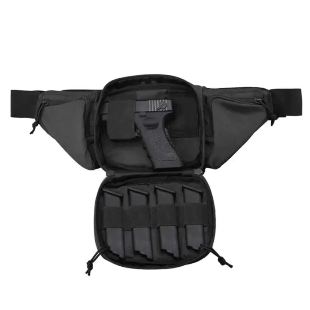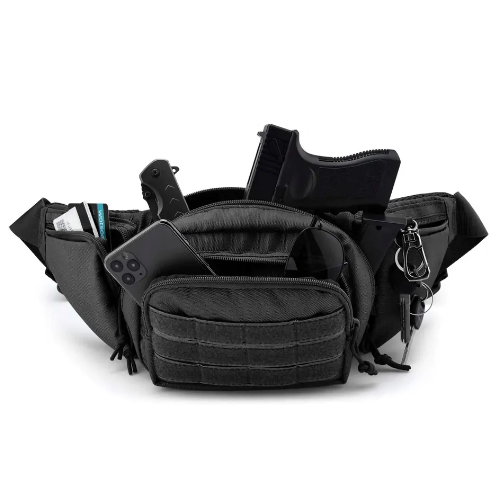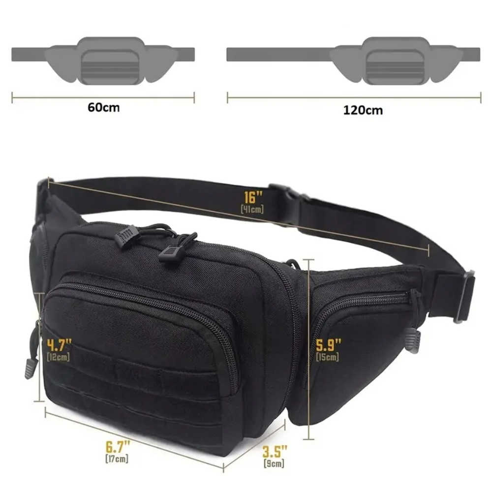 Ο ρυθμιζόμενος ιμάντας με κούμπωμα ασφαλείας επιτρέπει τη χρήση είτε ως μπανάνα μέσης, είτε ως τσάντα ώμου ή χιαστί, προσφέροντας ευελιξία και άνεση. Ιδανικό για στρατιωτική χρήση, πεζοπορία, κυνήγι, ταξίδια ή καθημερινή μεταφορά εξοπλισμού (EDC).